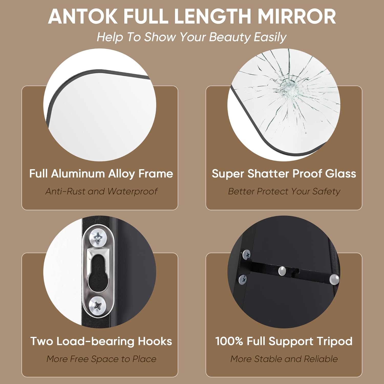 The Antok Full Length Mirror is perfect for bedrooms, living rooms, or any space where you want to add a touch of sophistication. Whether freestanding or mounted on the wall, this mirror will enhance the aesthetic of your room while providing a full-body reflection.