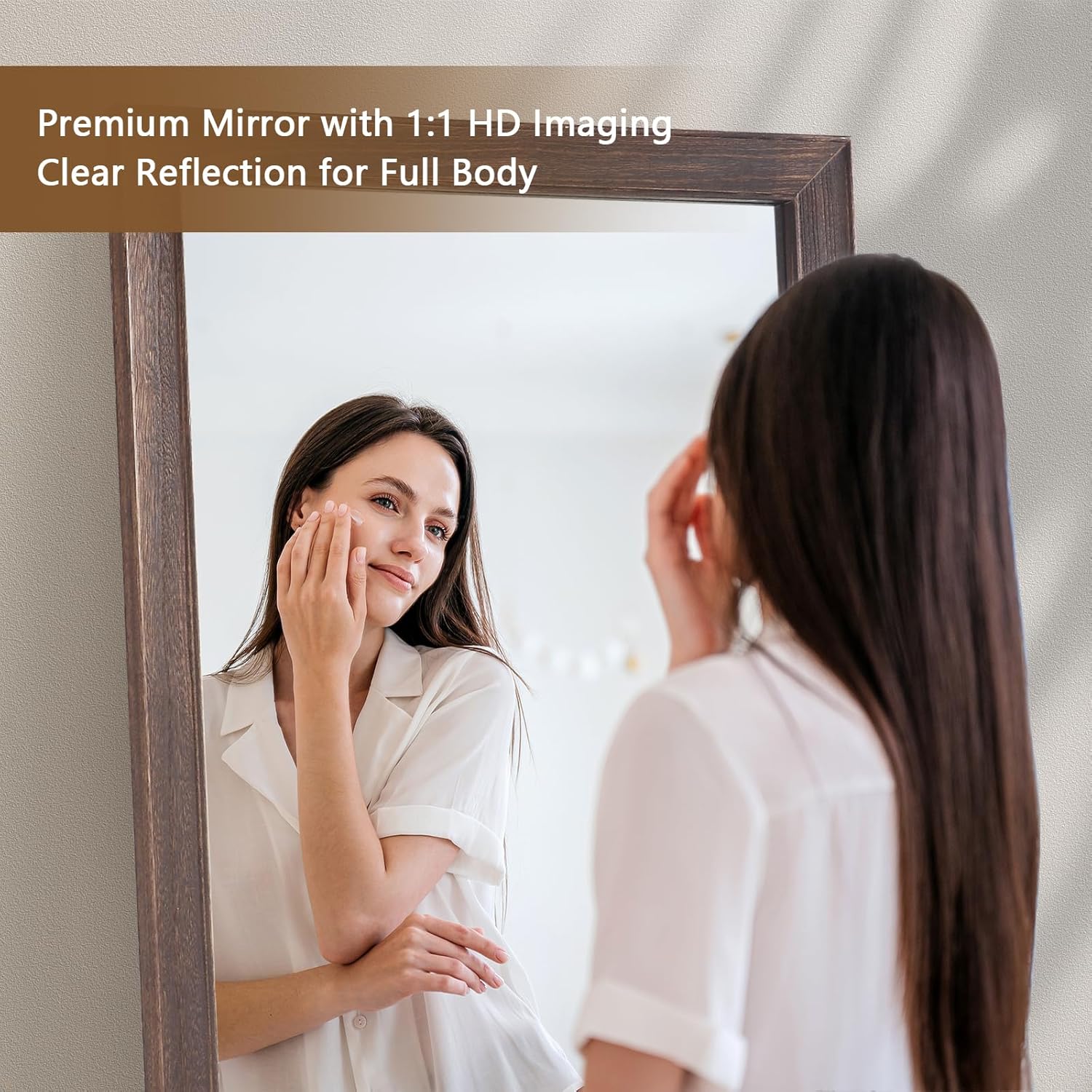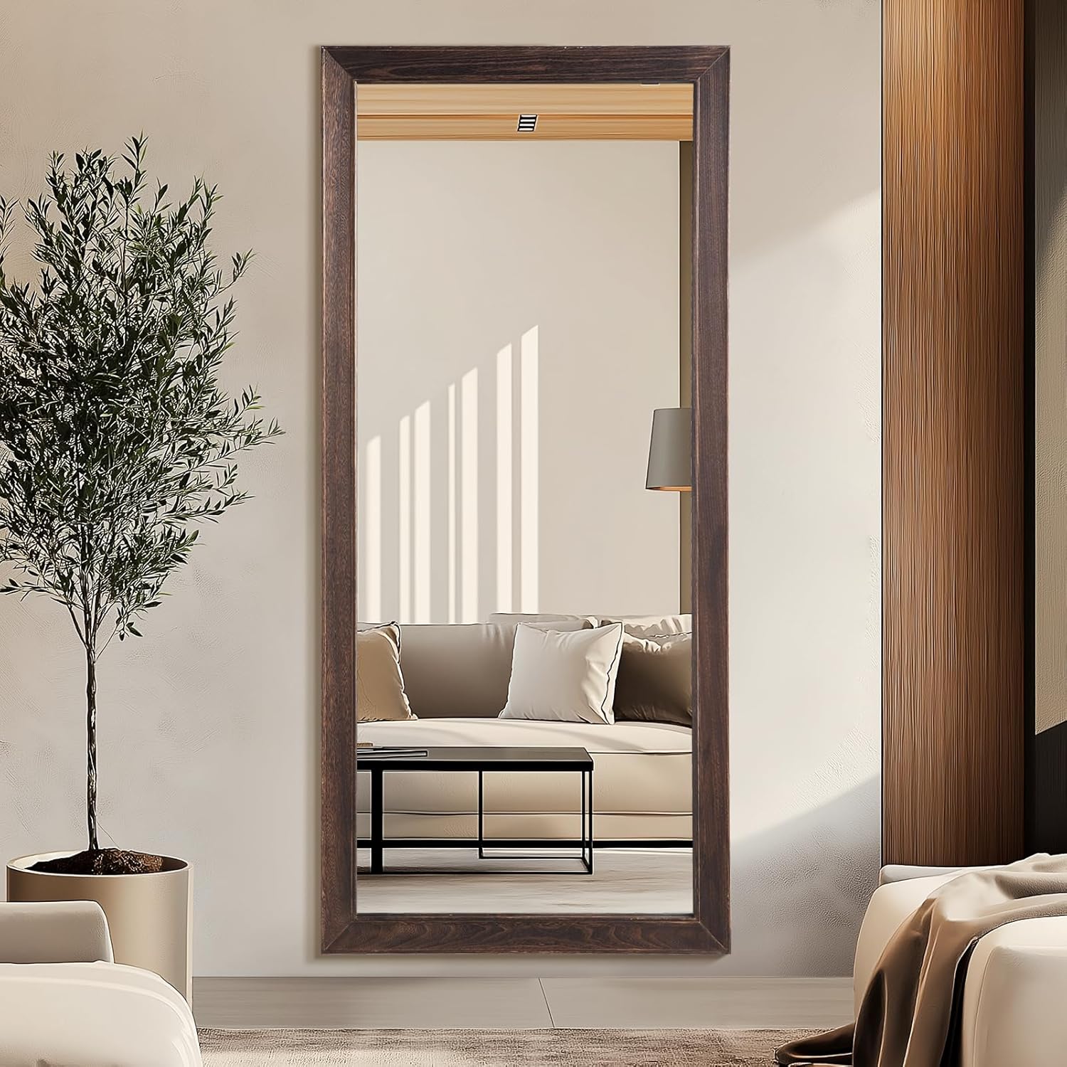Rustic Farmhouse Full Length Mirror, 71″x32″ Wood Frame Floor Mirror, Free Standing or Leaning Wall, Full Body for Bedroom Living Room Cloakroom, Brown